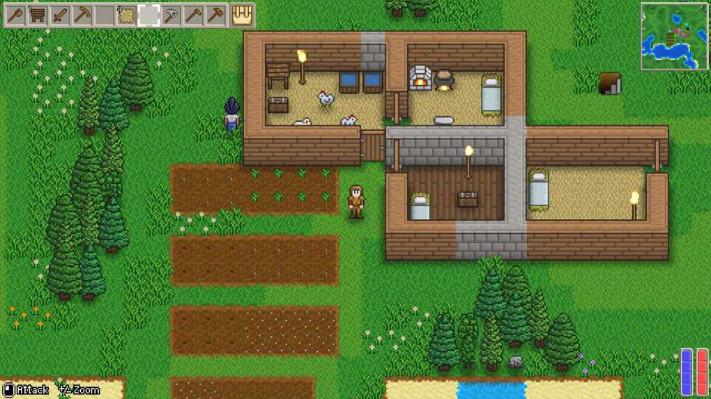 Ein 2D-Survival-Sandbox-Spiel, das Aufbau, Farming, Erkundung und Kämpfen auf eine sehr charmante Weise verbindet.